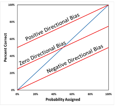 It has been demonstrated by many researchers over decades that overconfidence (underestimation of uncertainty) is very common, likely the most common bias. Some call overconfidence the primary bias, the gateway bias, or the mother of all biases (Moore 2020). Other biases are secondary—it is the presence of overconfidence that permits other biases, like directional bias, to exist. Consequently, the detection and elimination of overconfidence can be helpful in mitigating other biases as well.